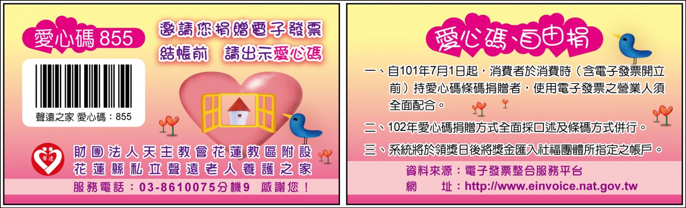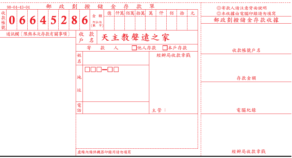 (二)戶名:財團法人天主教會花蓮教區附設花蓮縣私立聲遠老人養護之家
